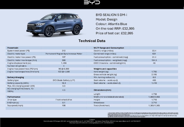 - The SEALION 5 DM-i offers the same warranty cover as its BYD range mates: a 6year/93.750-mile package